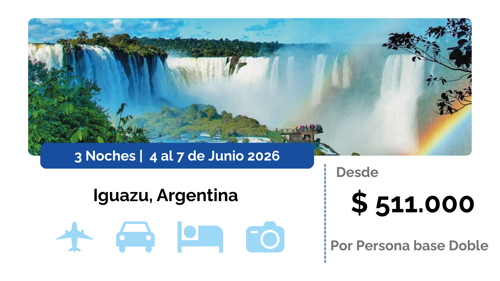 Salida 04/06/2026 – Regreso 07/06/2026 Desde $ 511 mil por persona en base doble.