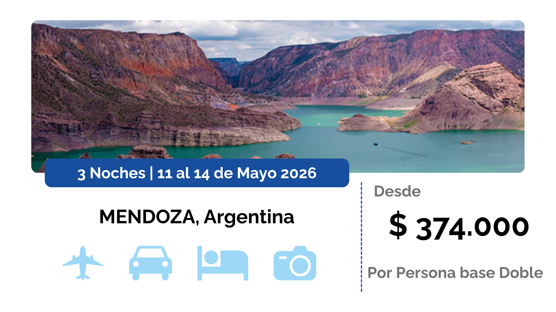 Salida 11/05/2026 – Regreso 14/05/2026 Desde $374 mil por persona en base doble.